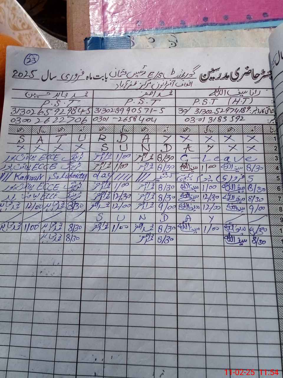 | Name: Ra**** Sa**** Designation: (School Headmaster's/Headmistress's) PST Phone/Cell Number: 03**** |