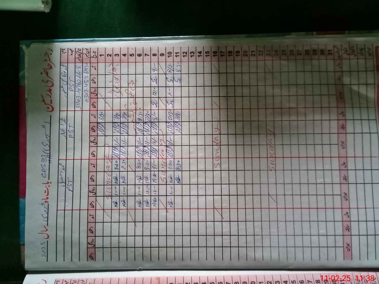 | CNIC | Full Name | Designation | R/C | Absence During Last Calender Month |