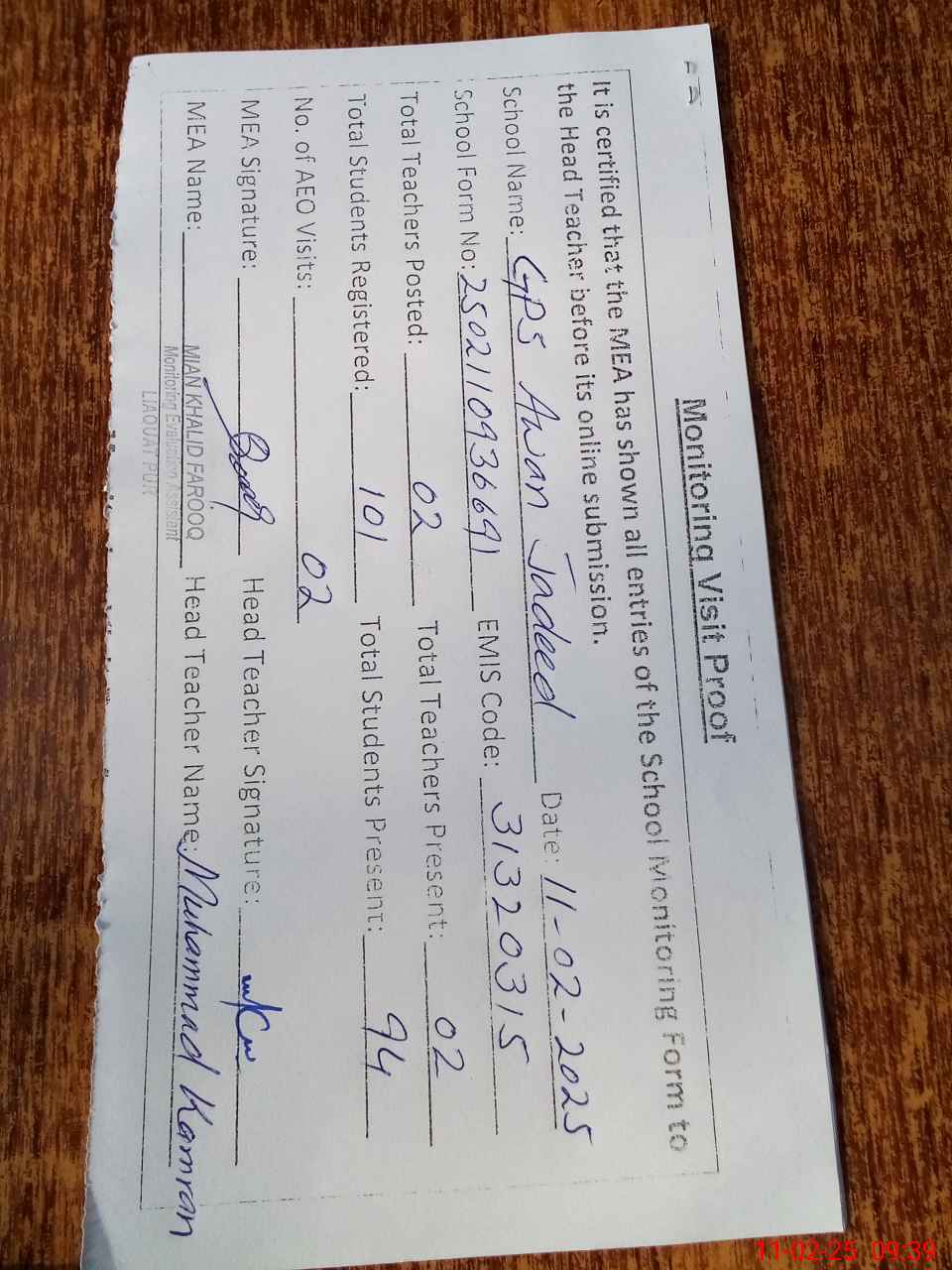| EMIS Code: 31320315 | Name of School: GPS AWAN JADEED | |||