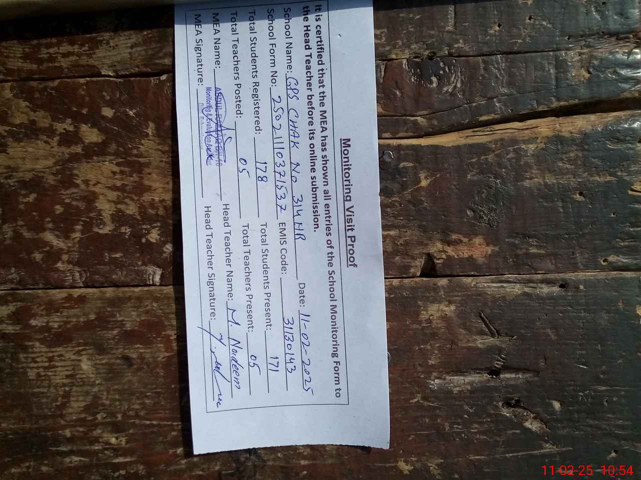 | EMIS Code: 31130143 | Name of School: GPS CHAK 314/HR | |||