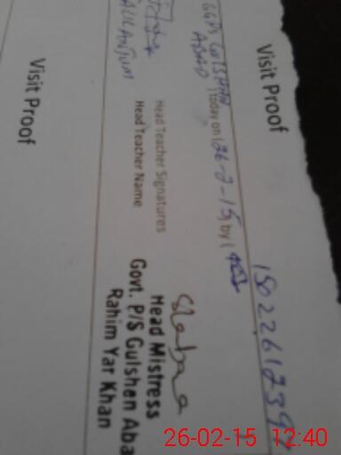 | Attendance Register | Head Teacher | MEA with School | Visit Proof |