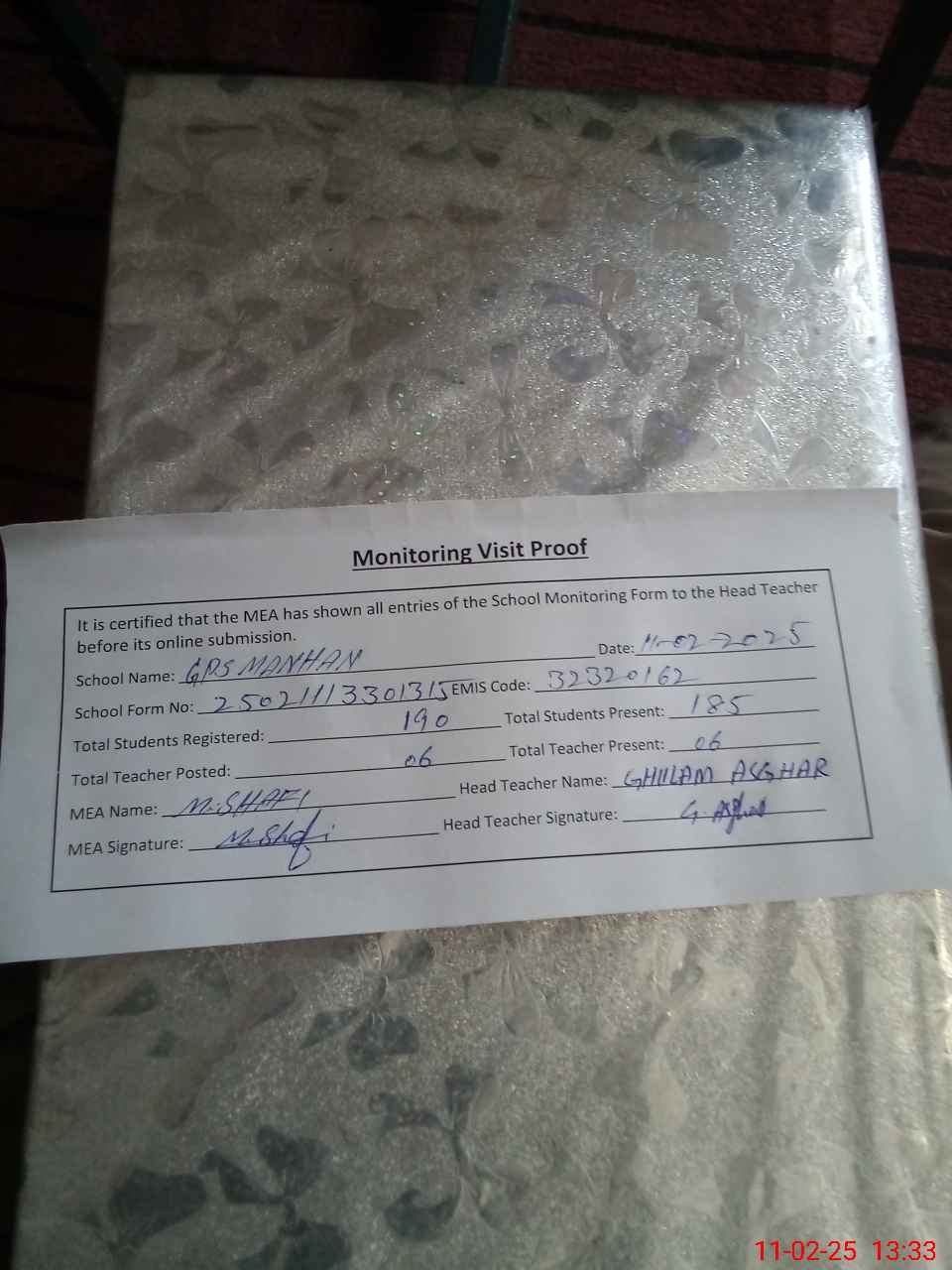 | EMIS Code: 32320162 | Name of School: GPS MANAH | |||