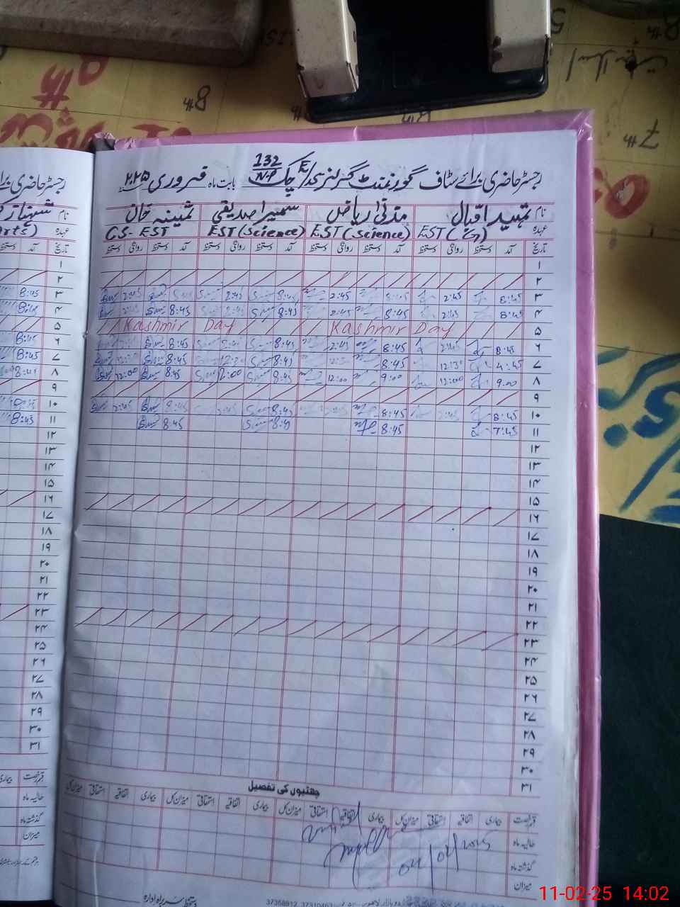 | Name: MU**** SU**** Designation: (School Headmaster's/Headmistress's) S.S.T.(G) Phone/Cell Number: 03**** |