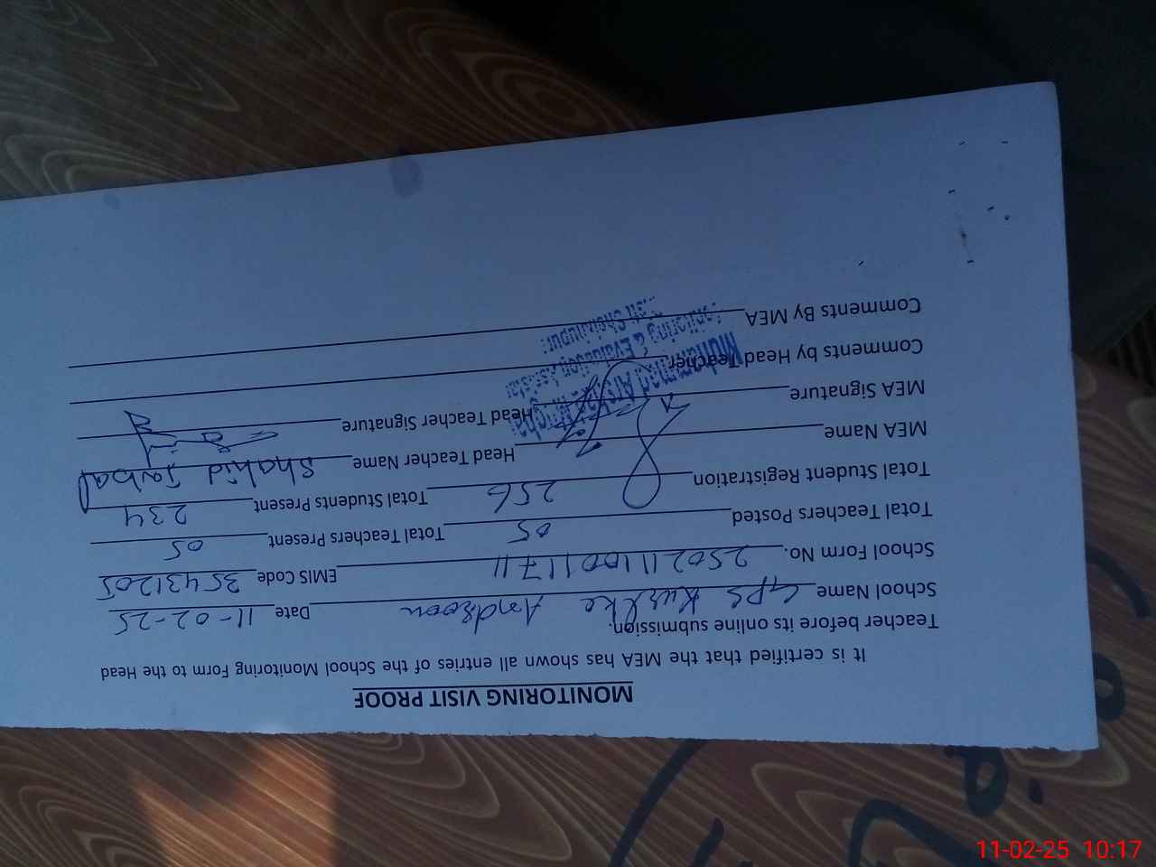 | EMIS Code: 35431205 | Name of School: GPS KURLKEY ANDROON | |||