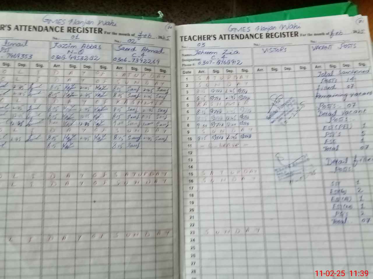 | Name: SH**** GU**** Designation: (School Headmaster's/Headmistress's) S.S.T.(G) Phone/Cell Number: 03**** |