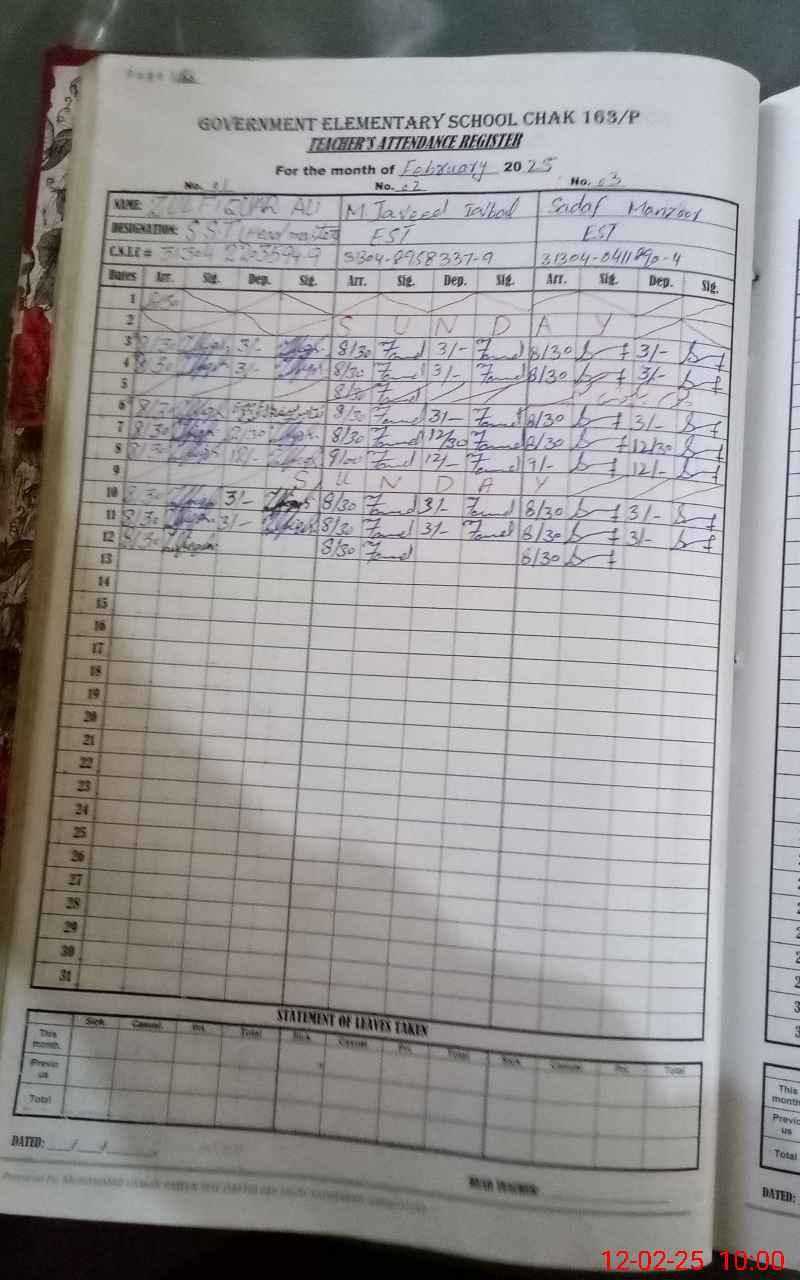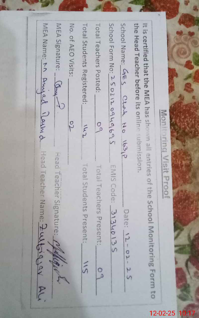 | EMIS Code: 31340135 | Name of School: GES CHAK NO 163/P | |||