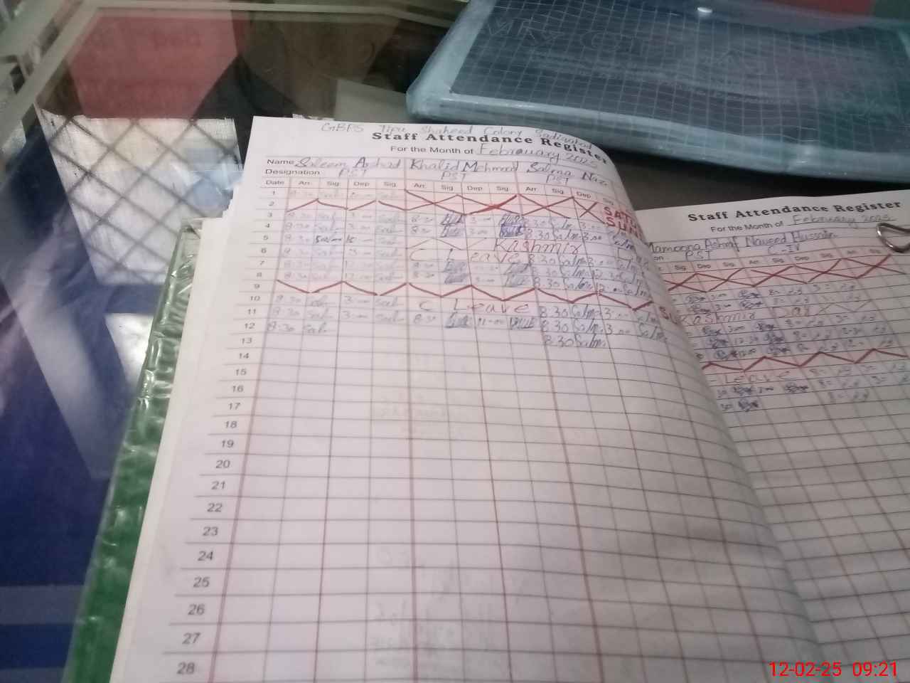 | CNIC | Full Name | Designation | R/C | Absence During Last Calender Month |