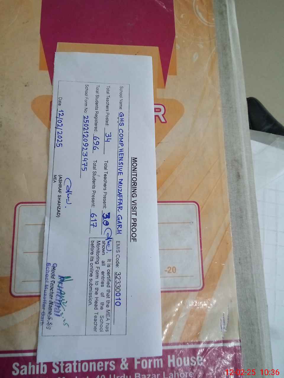 | EMIS Code: 32330010 | Name of School: GHS COMPREHENSIVE MUZAFFARGARH | |||