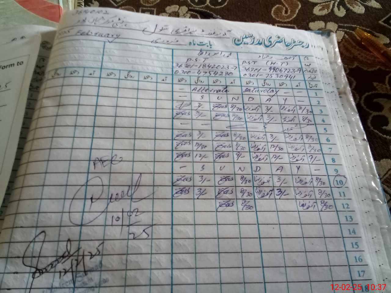 | Name: As**** Ra**** Designation: (School Headmaster's/Headmistress's) PST (Arts) Phone/Cell Number: 03**** |