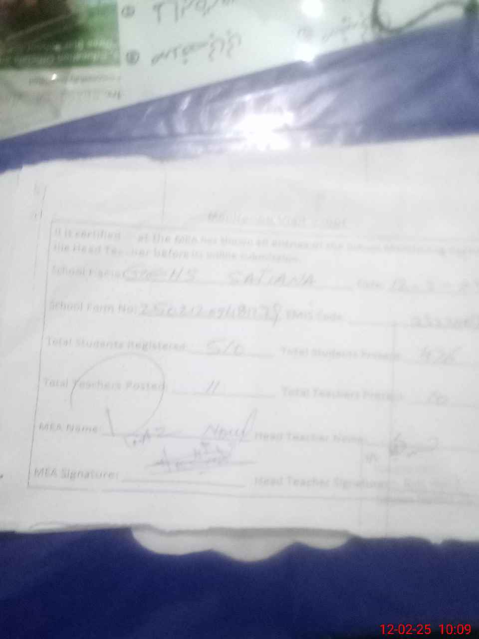 | Certified that this School was Inspected by the Undersigned MEA/DMO Today and the Information Stated Above is as Per Record. | |||||