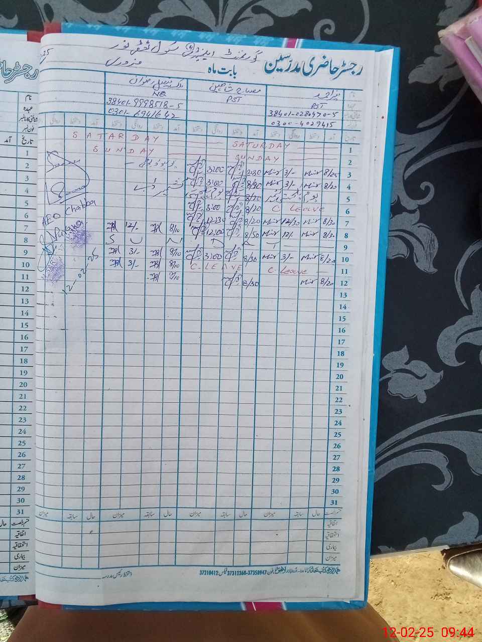 | Name: Mu**** Ij**** Designation: (School Headmaster's/Headmistress's) EST Phone/Cell Number: 03**** |