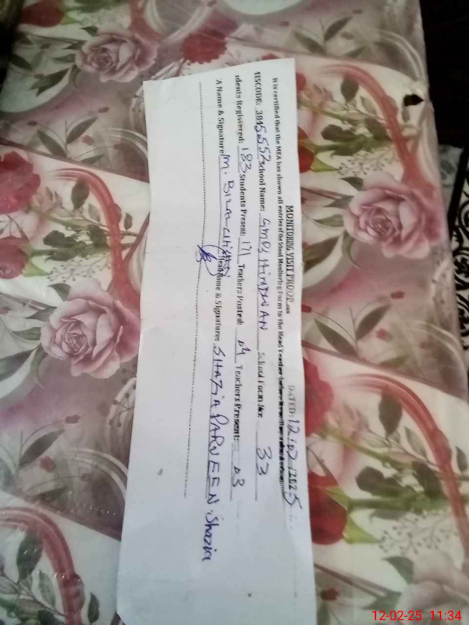 | Name: SH**** PA**** Designation: (School Headmaster's/Headmistress's) PTC/JV Phone/Cell Number: 03**** |