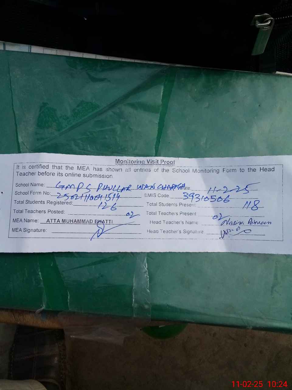 | EMIS Code: 39310506 | Name of School: GMPS PHULLAR WAN CHRAGH | |||