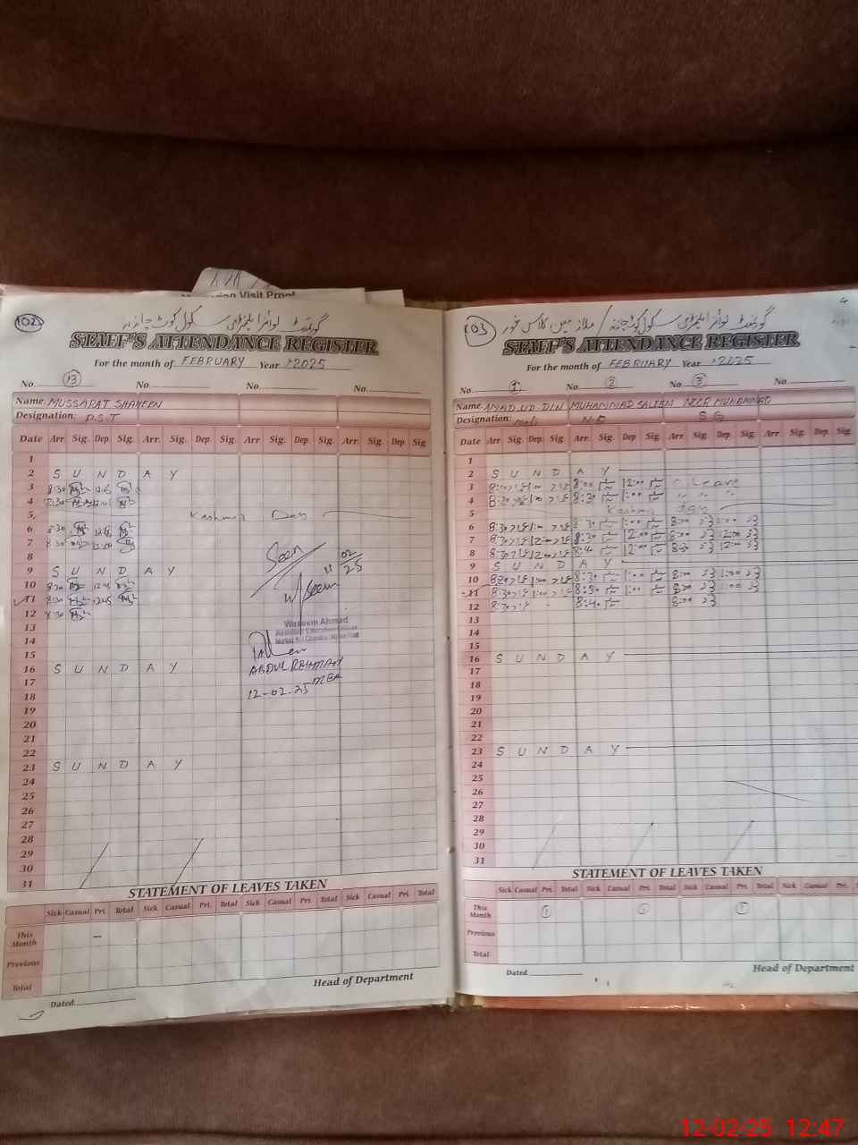 | CNIC | Full Name | Designation | R/C | Absence During Last Calender Month |
