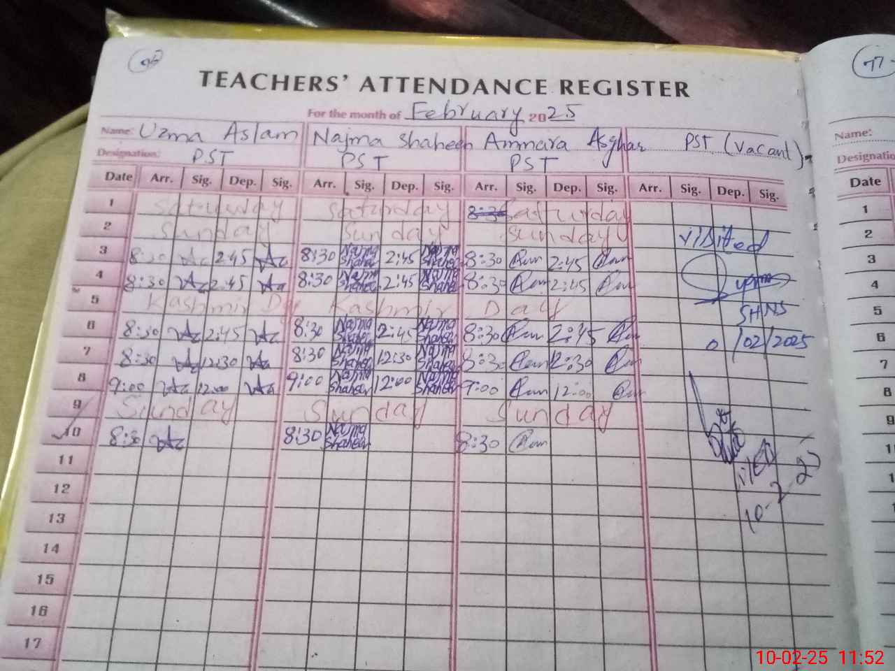 | School Visited by School Health & Nutrition Supervisor (No. of Visits) | 1 | Name1: | Shabnam Yasmeen | Name2: | |