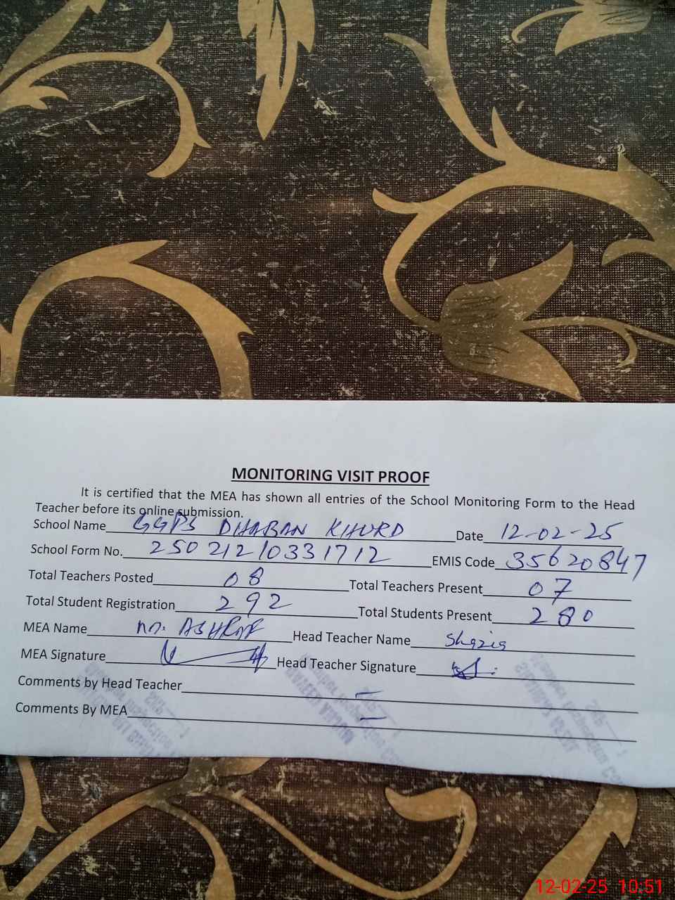 | EMIS Code: 35620847 | Name of School: GGPS DHABAN KHURD | |||