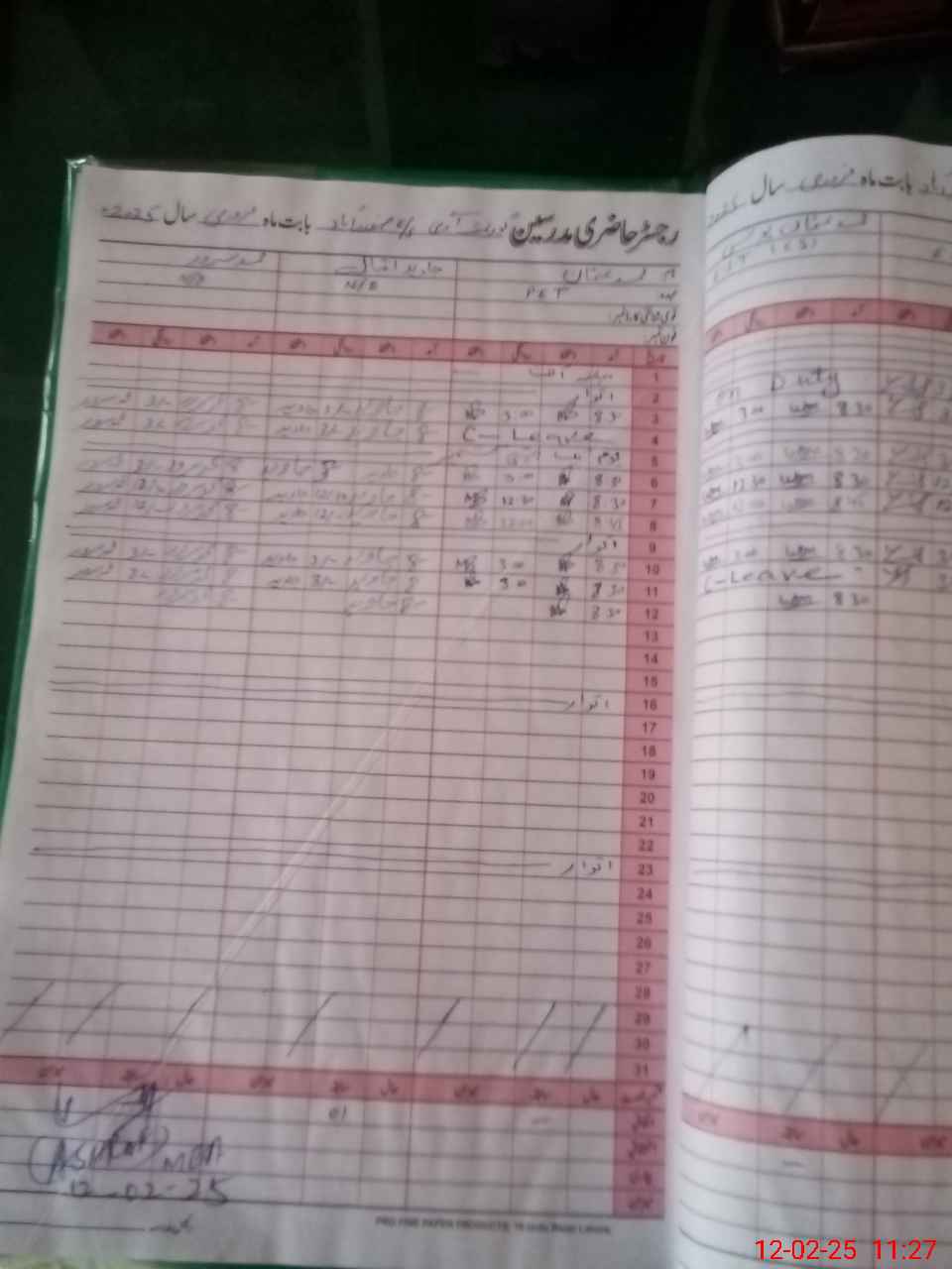 | Leave | Duty | Absent | Maternity | Medical | Ex- Pak |