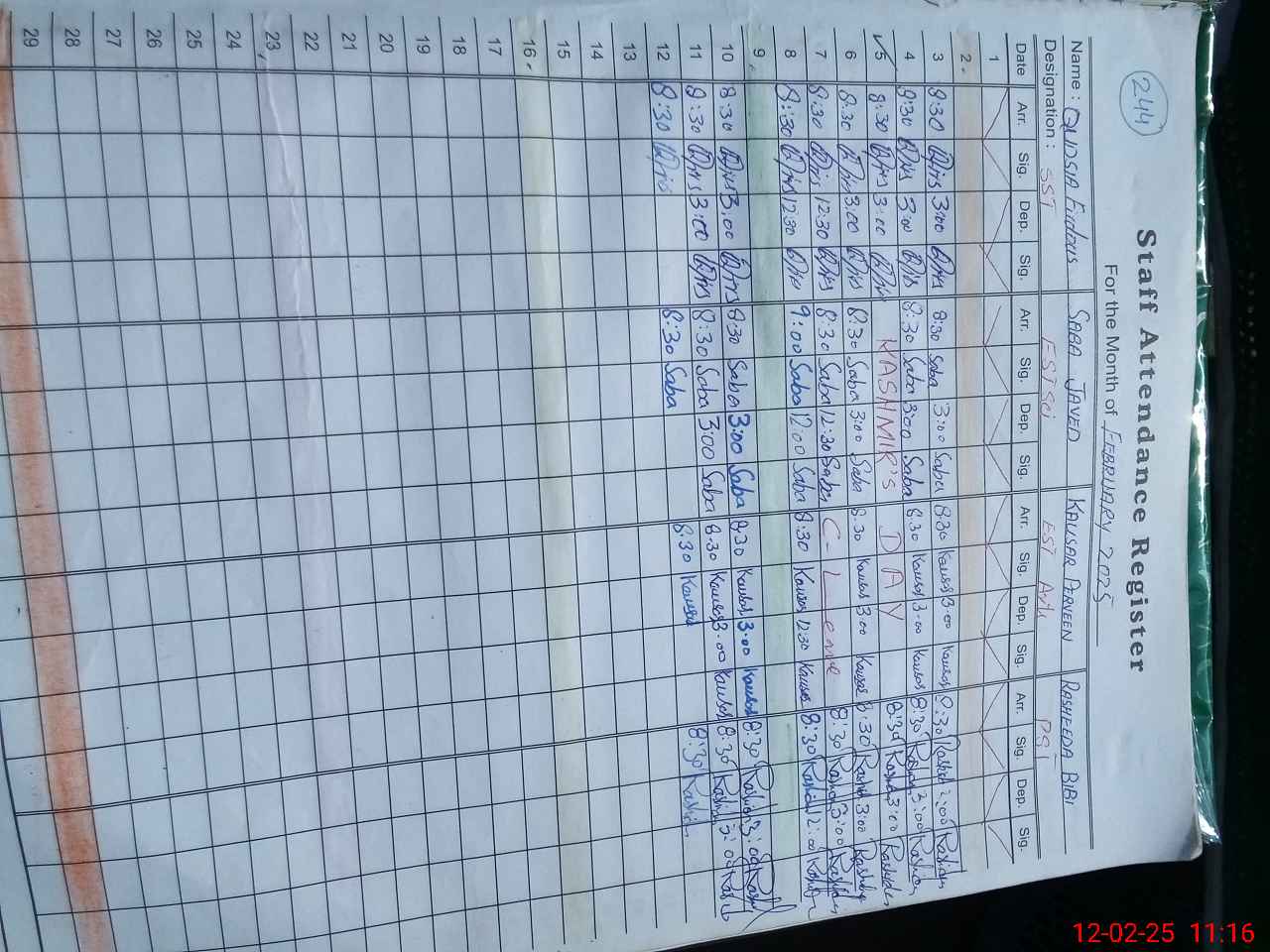 | Name: QU**** FE**** Designation: (School Headmaster's/Headmistress's) S.S.T.(Arts) Phone/Cell Number: 03**** |