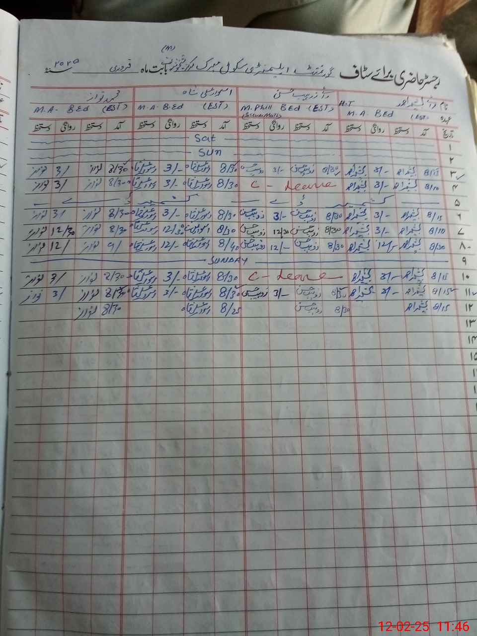 | CNIC | Full Name | Designation | R/C | Absence During Last Calender Month |