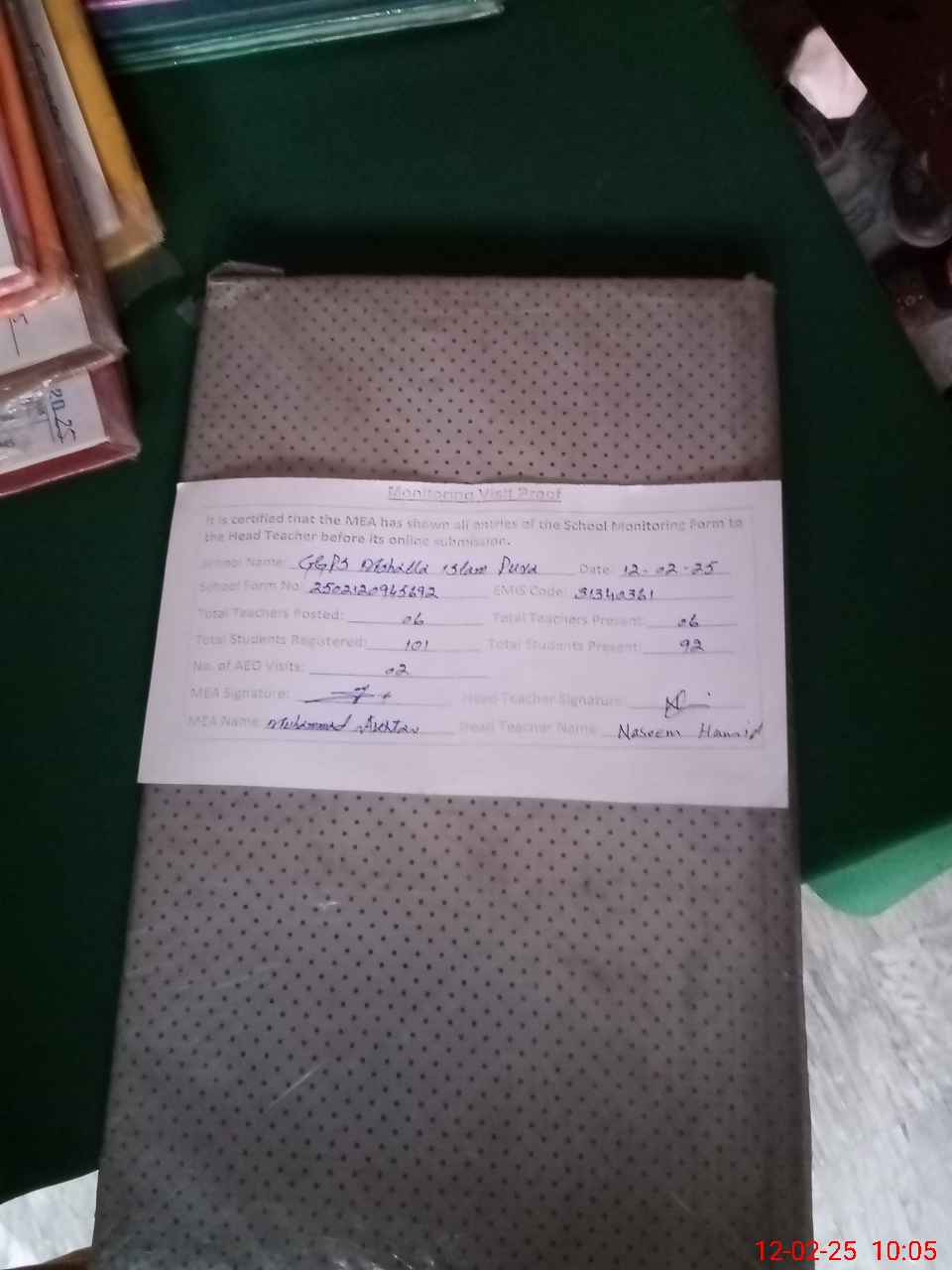 | Attendance Register | Head Teacher | MEA with School | Visit Proof |