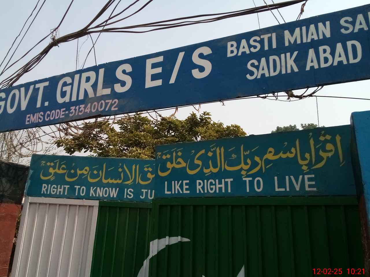 | District: RAHIMYAR KHAN | Tehsil: SADIQABAD | Markaz: SADAR SADIQ ABAD-FEMALE | Level: Middle | |