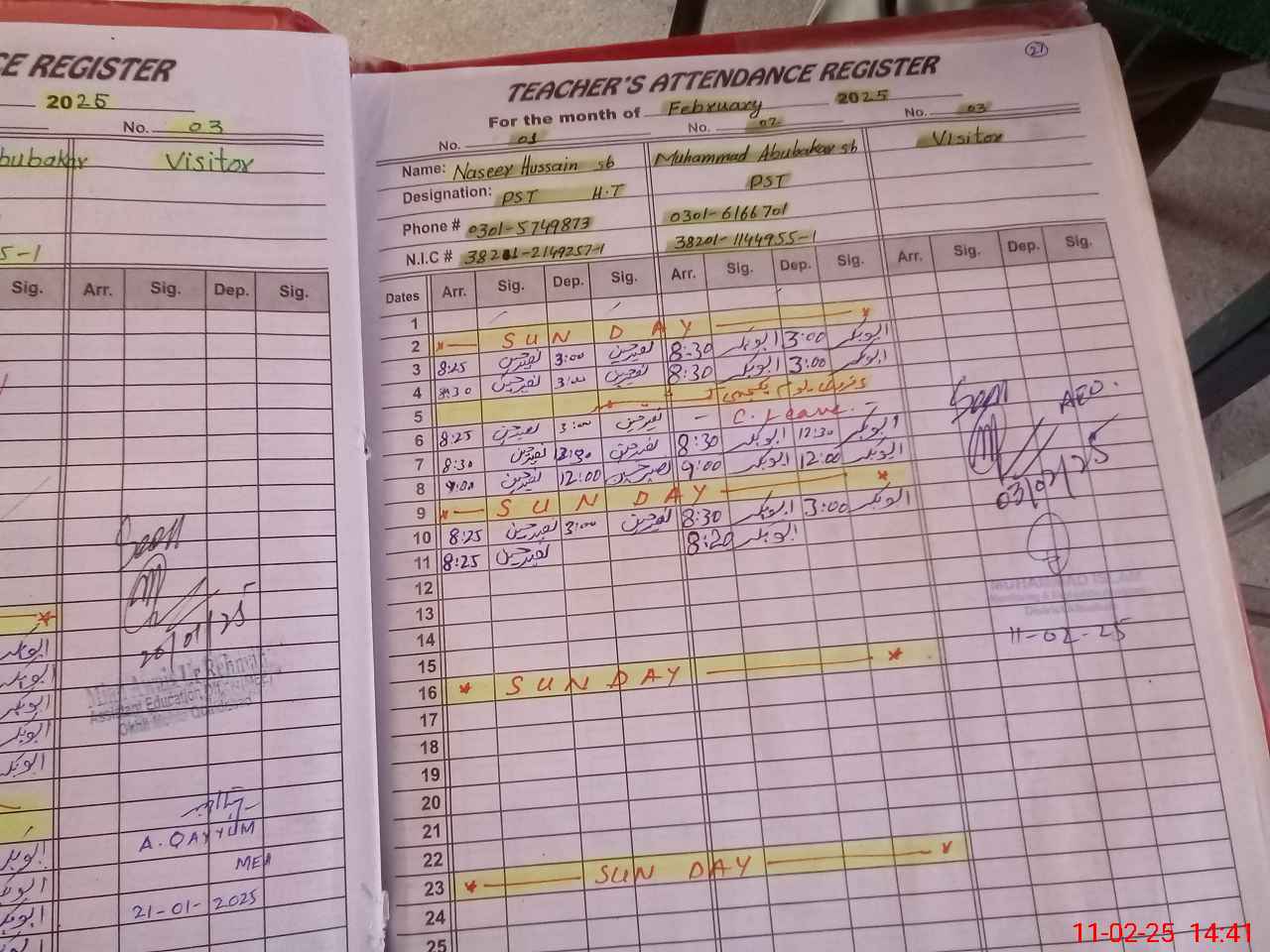 | CNIC | Full Name | Designation | R/C | Absence During Last Calender Month |