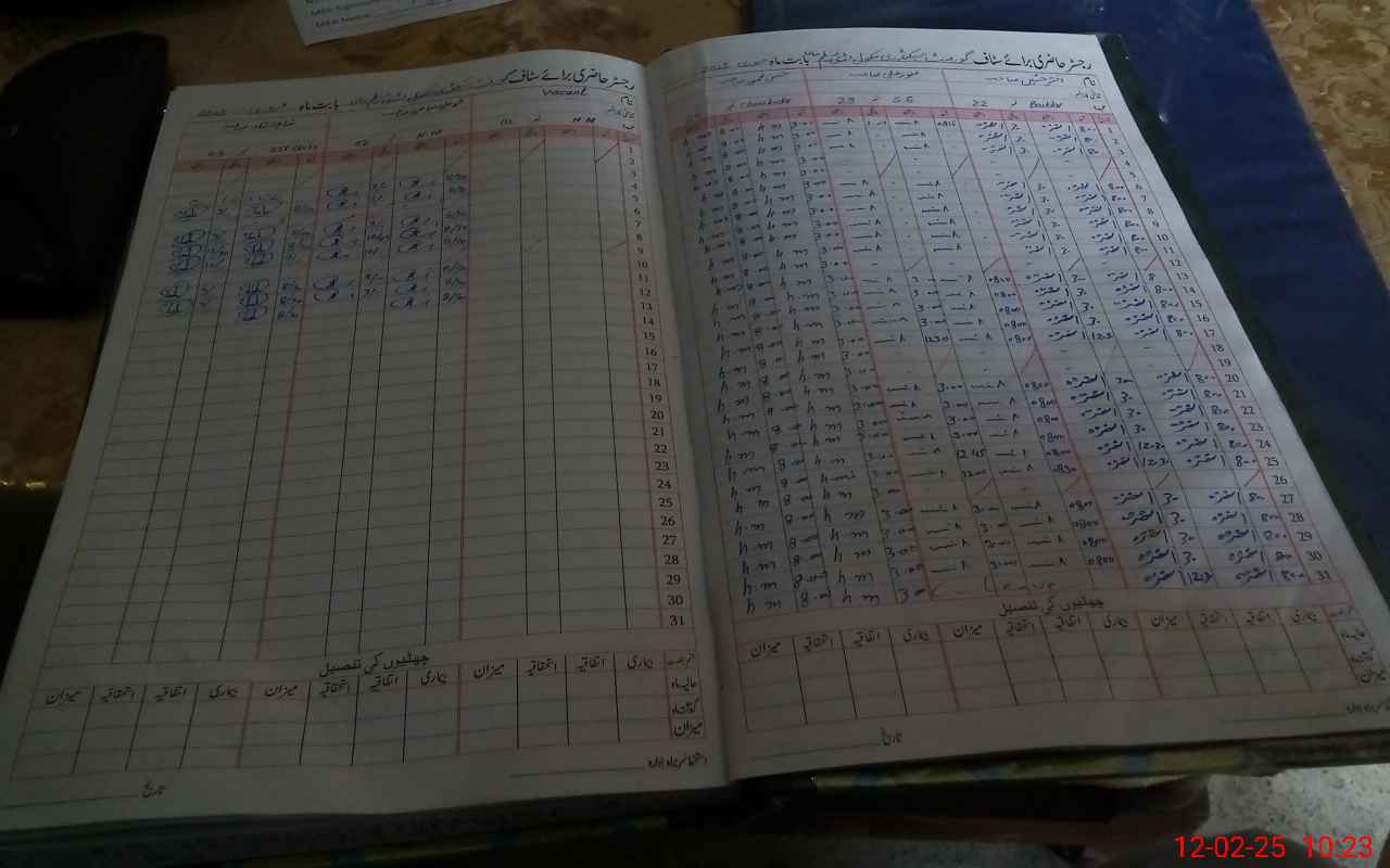 | CNIC | Full Name | Designation | R/C | Absence During Last Calender Month |