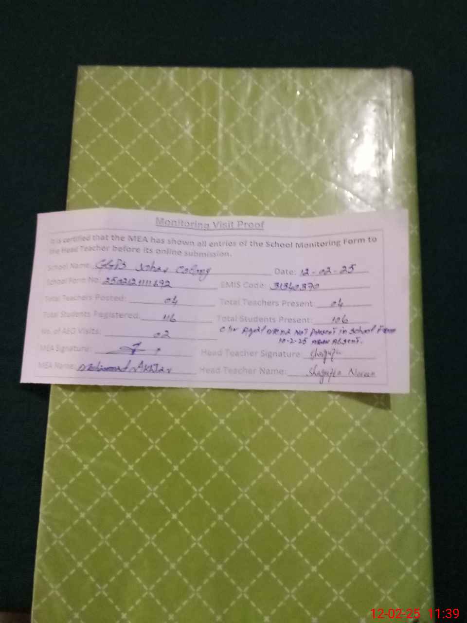 | EMIS Code: 31340370 | Name of School: GGPS JOHAR COLONY | |||
