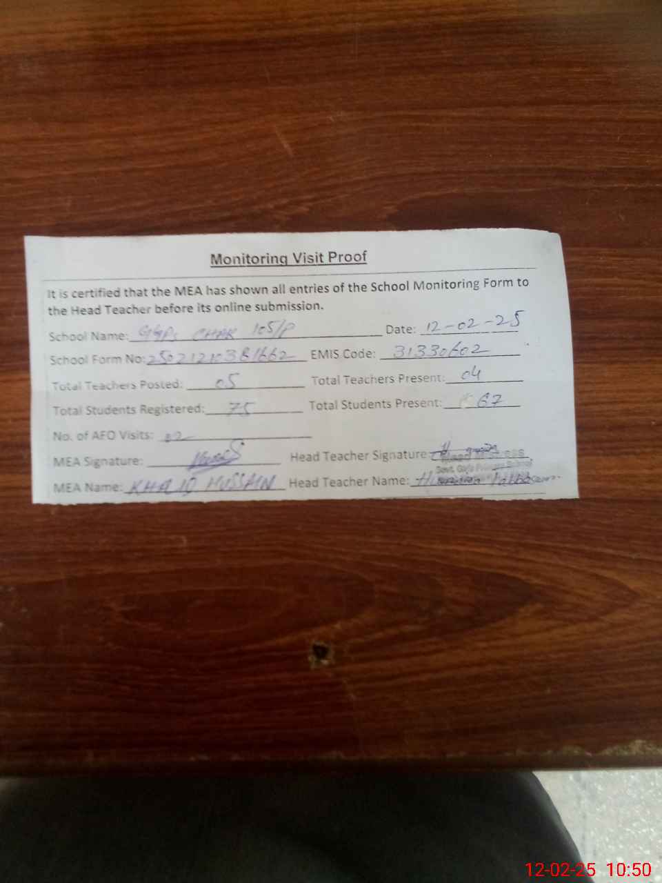 | EMIS Code: 31330602 | Name of School: GGPS CHAK NO. 105/P | |||