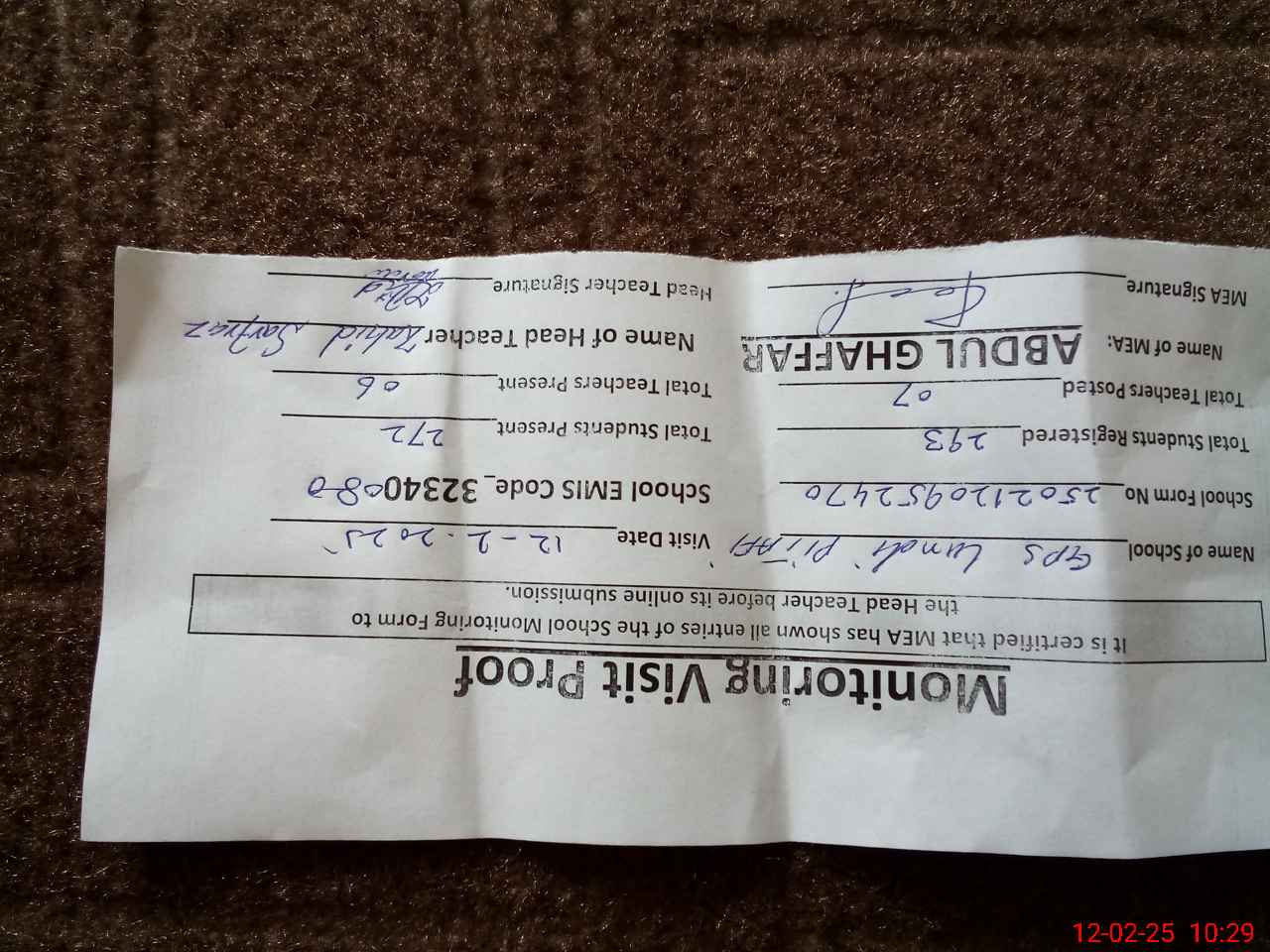 | Certified that this School was Inspected by the Undersigned MEA/DMO Today and the Information Stated Above is as Per Record. | |||||