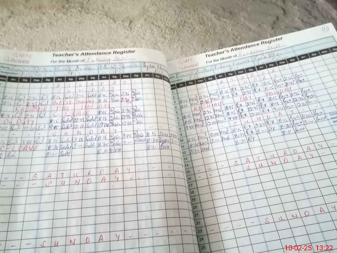 | Leave | Duty | Absent | Maternity | Medical | Ex- Pak |