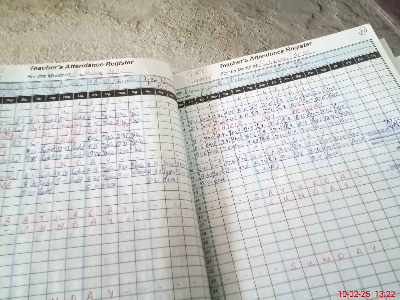 | CNIC | Full Name | Designation | R/C | Absence During Last Calender Month |
