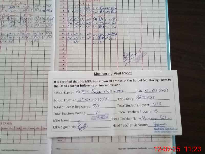 | EMIS Code: 36120323 | Name of School: GGHS SHAH PUR UBBHA SHUJABAD | |||