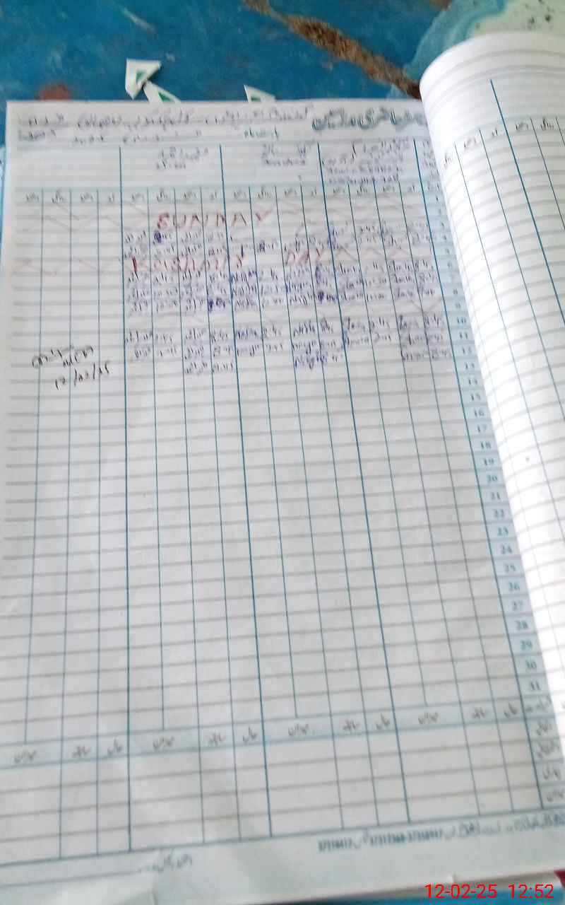 | CNIC | Full Name | Designation | R/C | Absence During Last Calender Month |