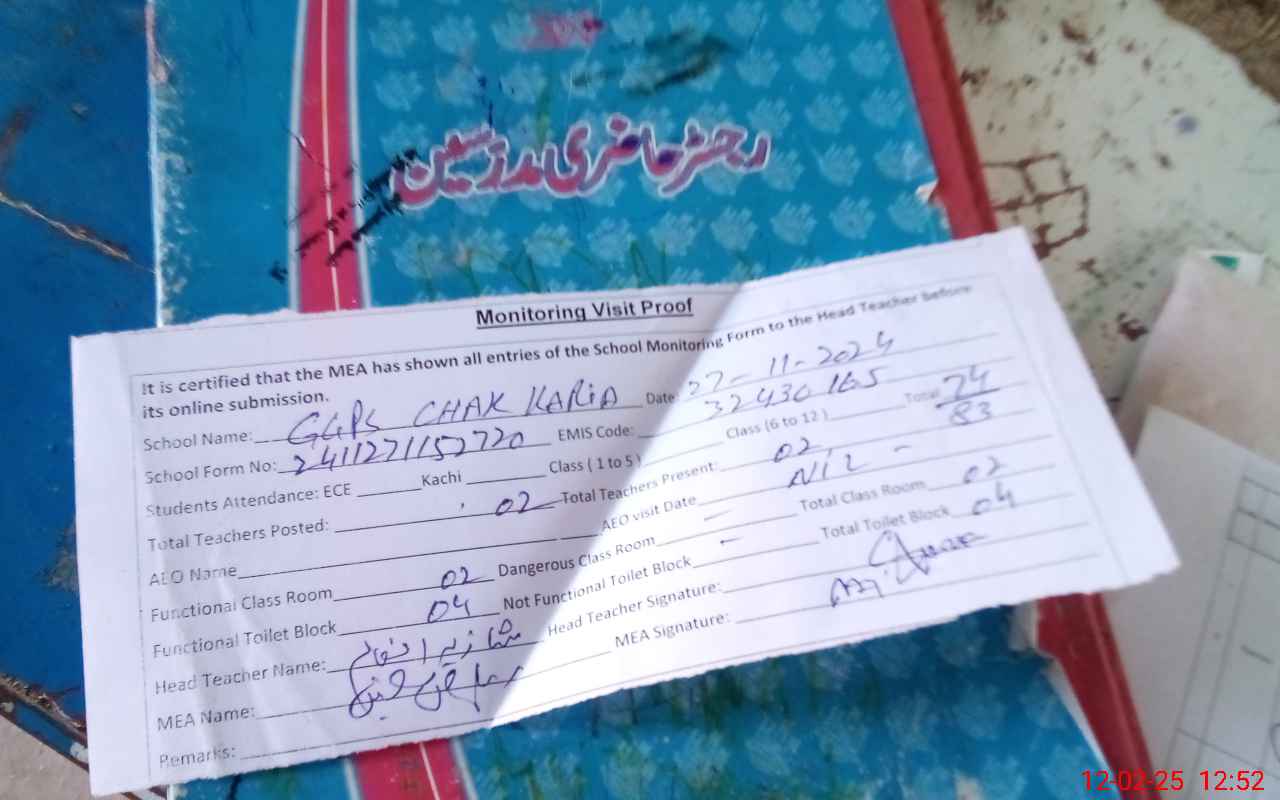 | EMIS Code: 32430165 | Name of School: GGPS CHAK KARIA | |||