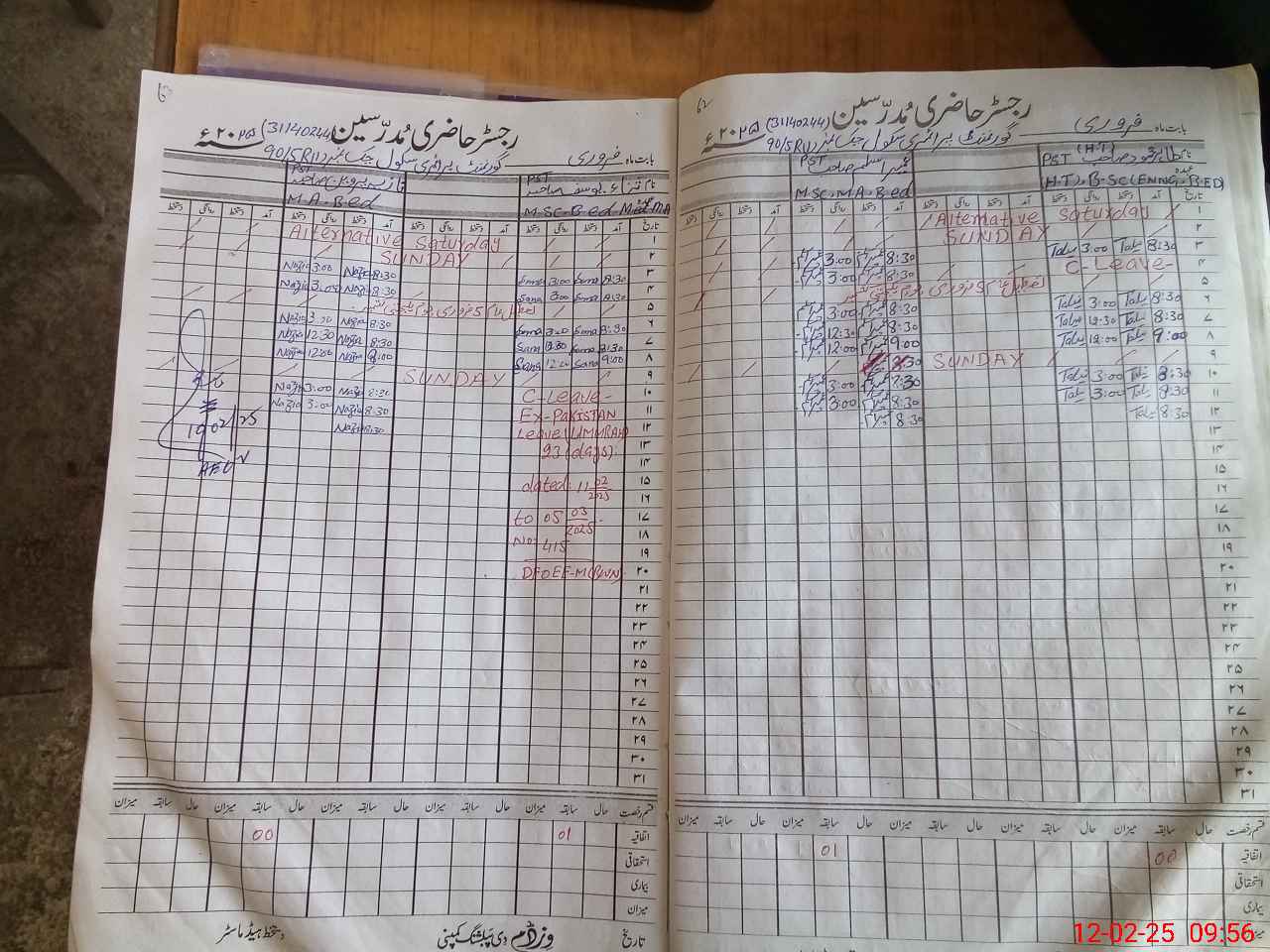 | CNIC | Full Name | Designation | R/C | Absence During Last Calender Month |