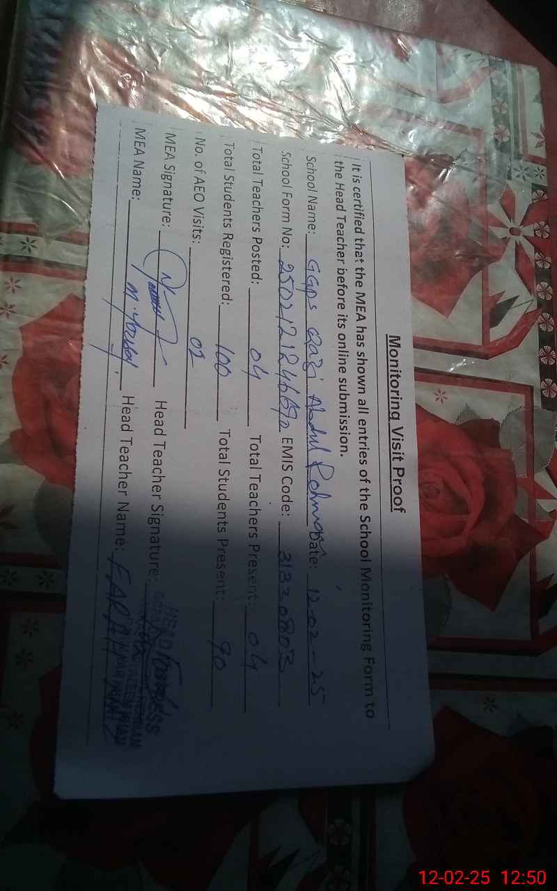 | EMIS Code: 31330803 | Name of School: GGPS QAZI ABADUR REHMAN | |||