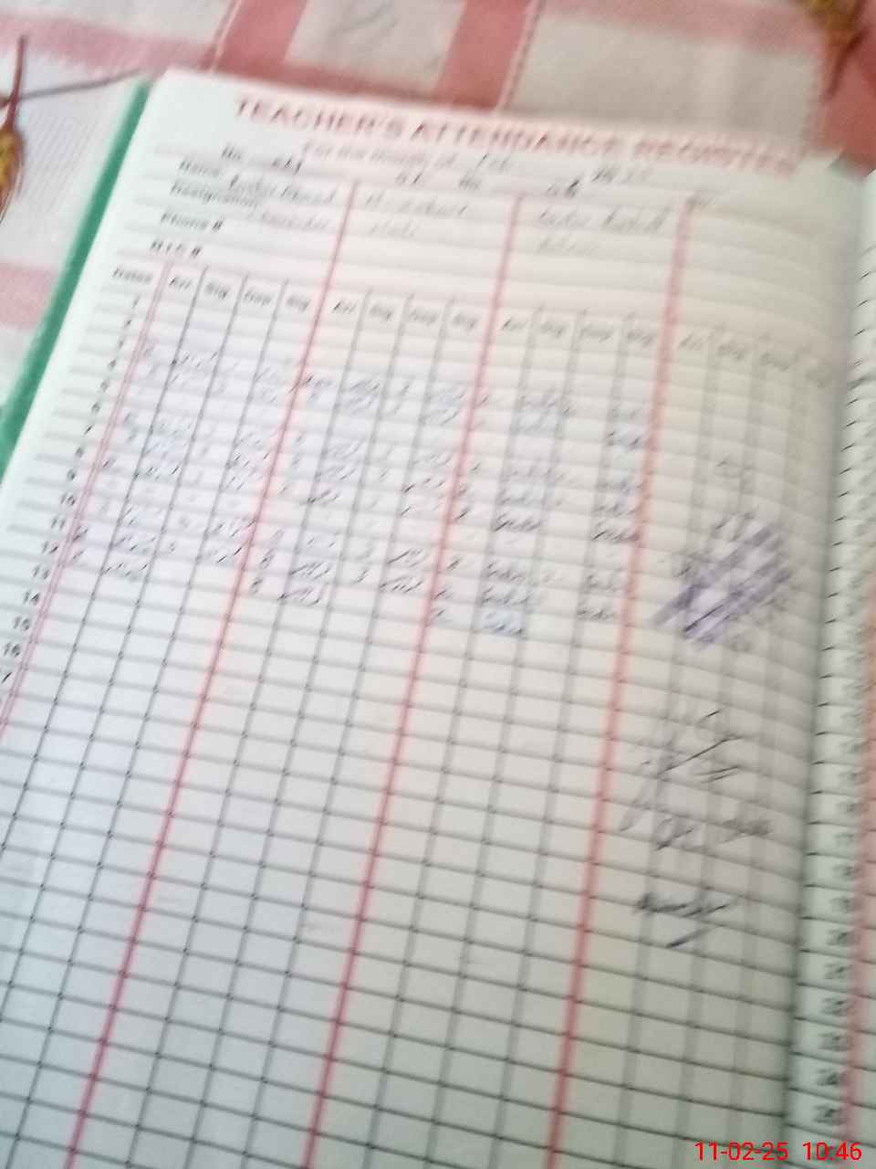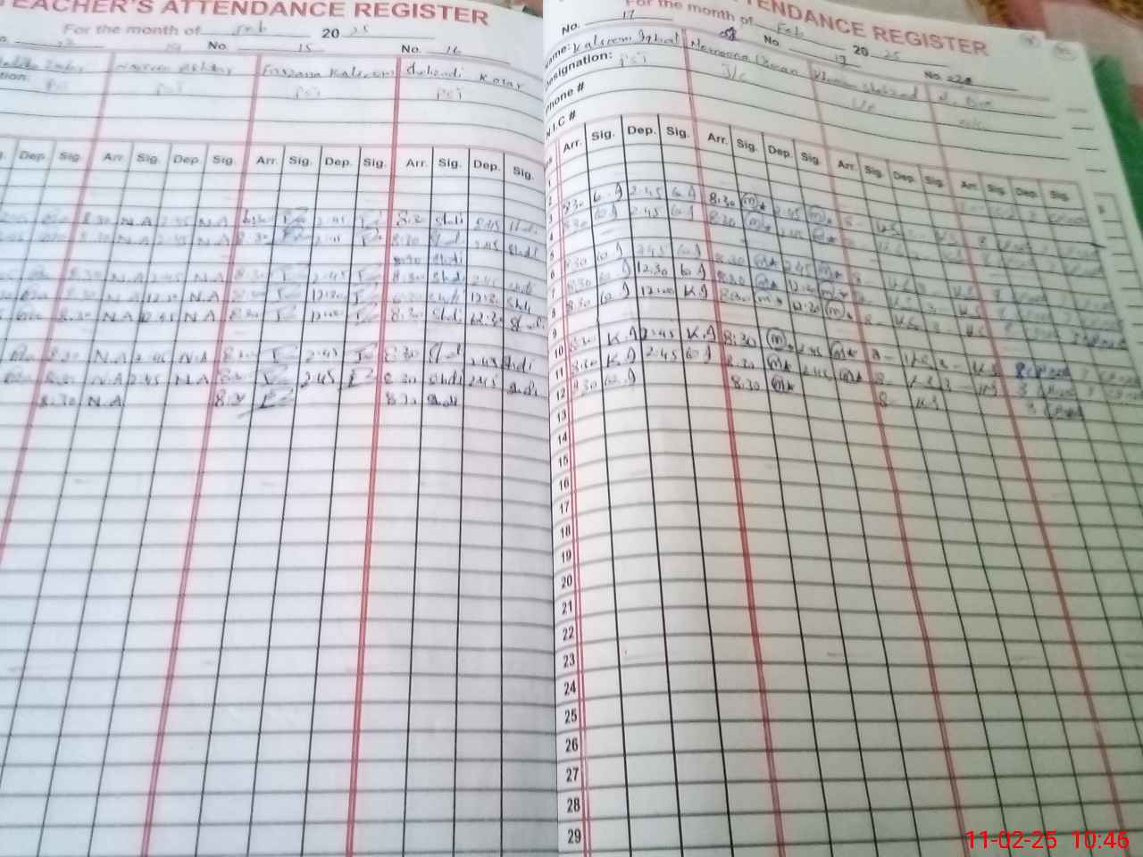 | CNIC | Full Name | Designation | R/C | Absence During Last Calender Month |