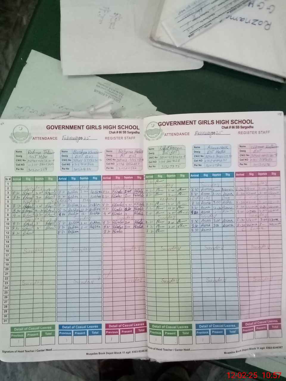 | CNIC | Full Name | Designation | R/C | Absence During Last Calender Month |