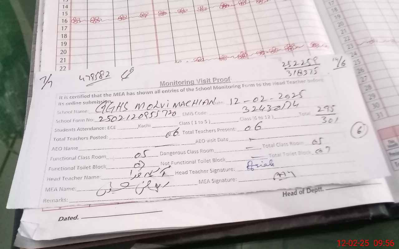 | EMIS Code: 32430174 | Name of School: GGHS MOLVI MACHIAN | |||