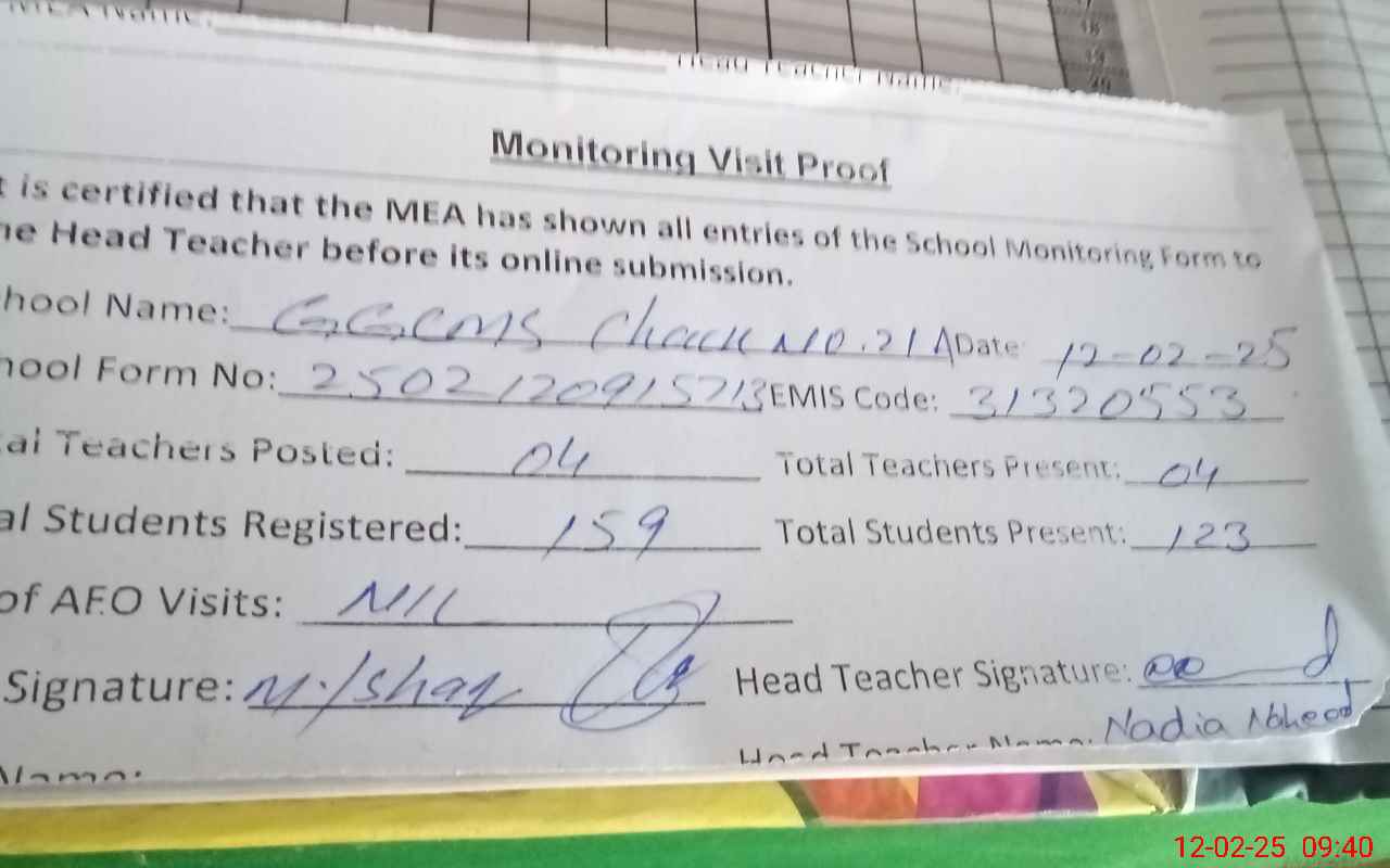 | EMIS Code: 31320553 | Name of School: GGCMS CHAK NO. 21/A | |||