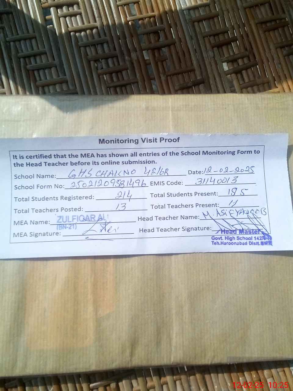 | Certified that this School was Inspected by the Undersigned MEA/DMO Today and the Information Stated Above is as Per Record. | |||||