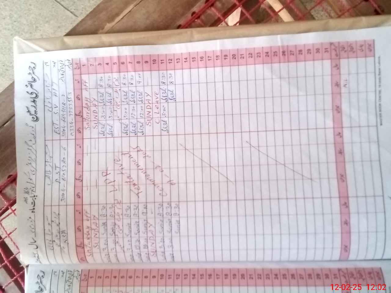 | CNIC | Full Name | Designation | R/C | Absence During Last Calender Month |