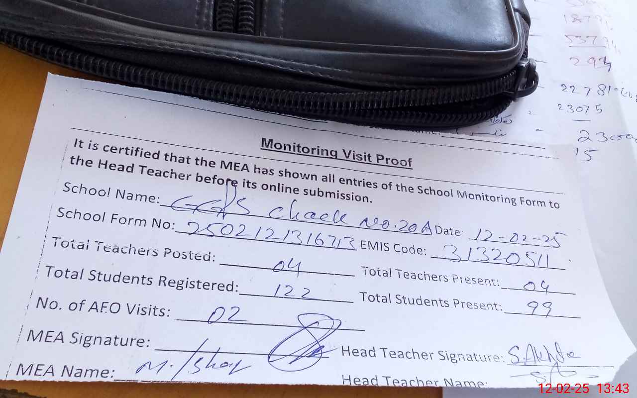 | Attendance Register | Head Teacher | MEA with School | Visit Proof |