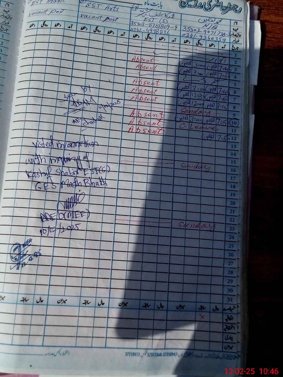 | 35**** | Mu**** Ka**** Sh**** | EST | Regular | 0 | 0 | 0 | 0 | 0 | 0 | 0 | 0 | 0 | Absent (Un-Authorized) |