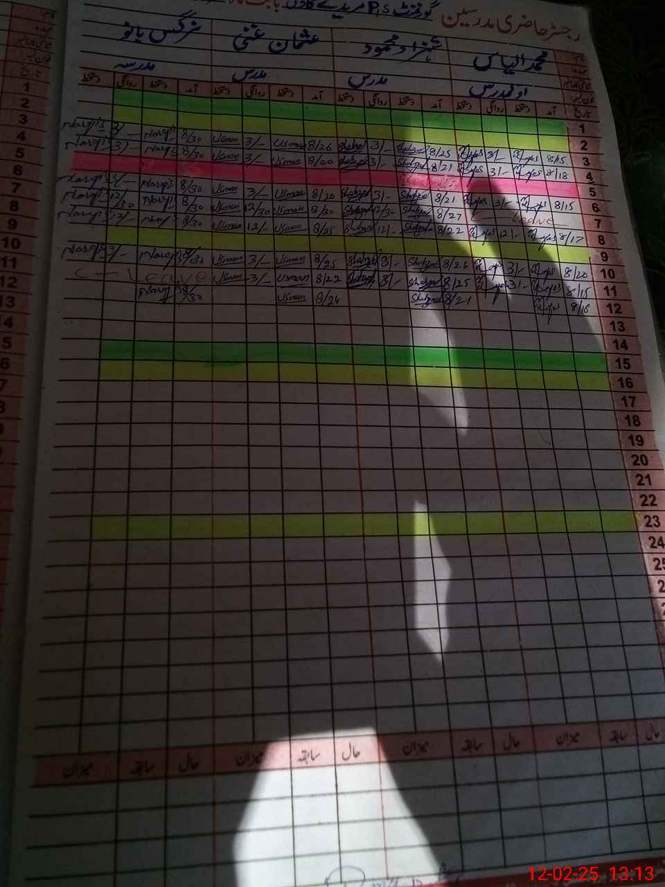 | CNIC | Full Name | Designation | R/C | Absence During Last Calender Month |