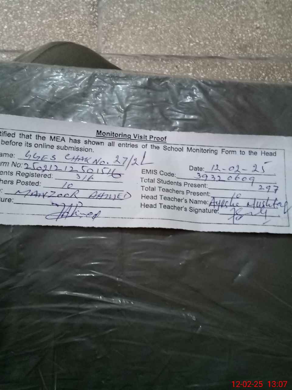 | EMIS Code: 39320609 | Name of School: GGES CHAK NO. 27/2-L | |||