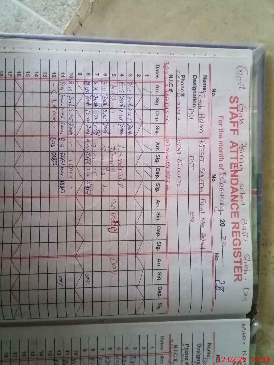 | Name: FA**** AS**** Designation: (School Headmaster's/Headmistress's) PST Phone/Cell Number: 03**** |