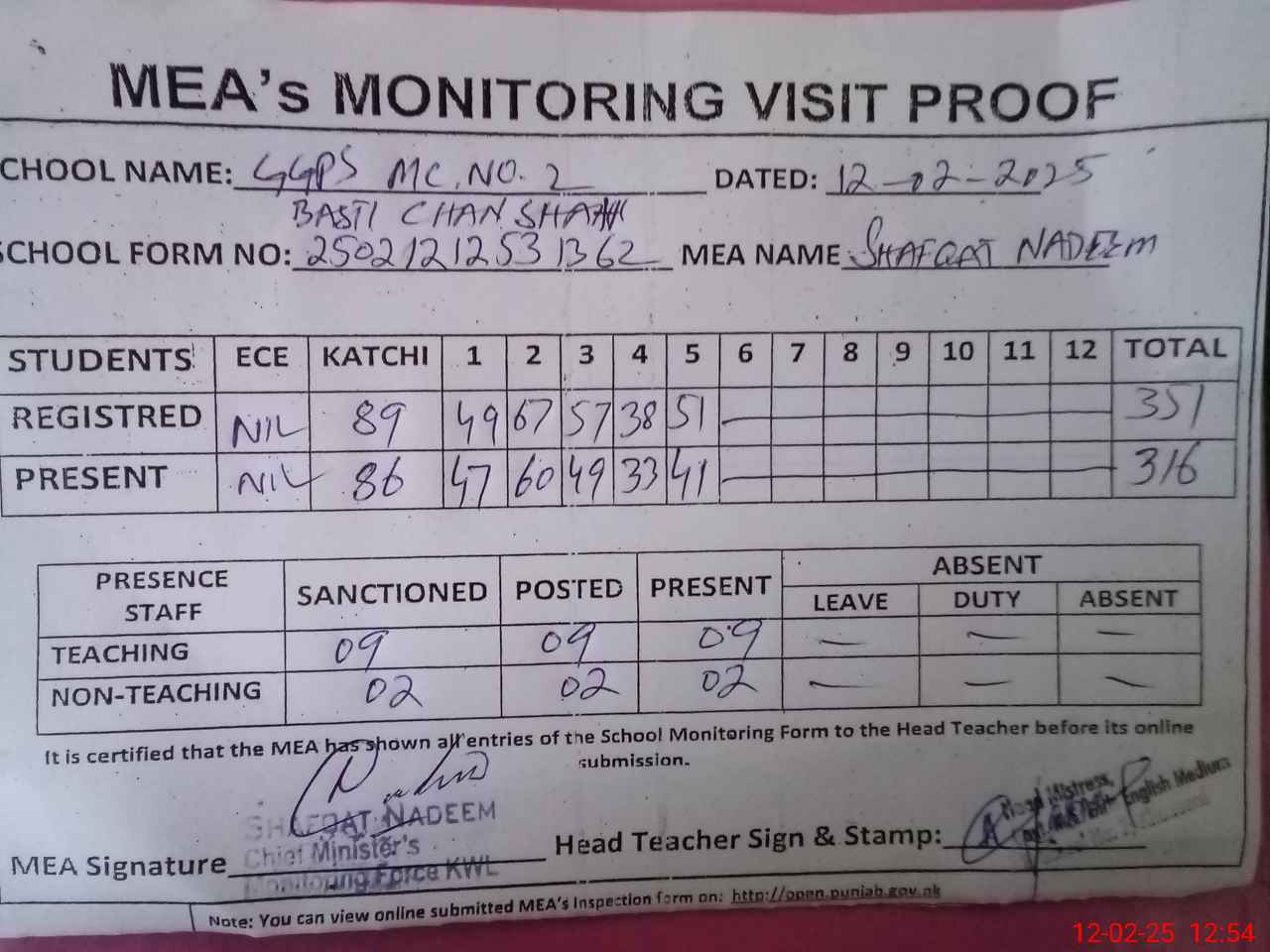 | EMIS Code: 36420362 | Name of School: GGPS MC NO.2 P/O BASTI CHAN SHAH, KHANEWAL | |||