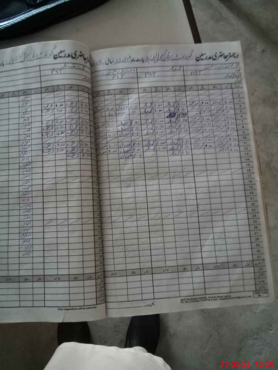 | CNIC | Full Name | Designation | R/C | Absence During Last Calender Month |